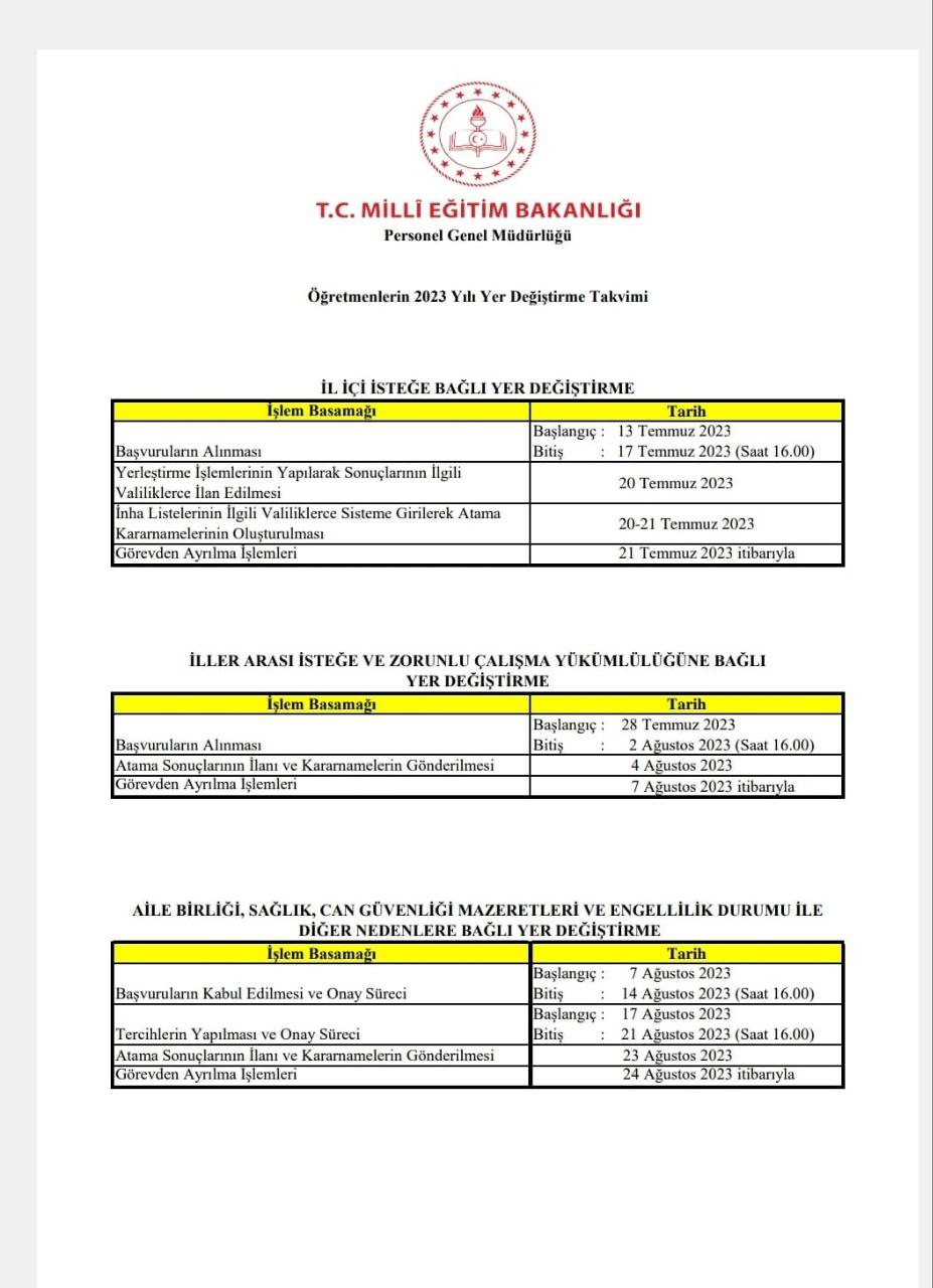 2024-2025 eğitim öğretim yılı 09 Eylül 2023 Pazartesi günü başlayacaktır. I. dönem ara tatil 11-15 Kasım 2024 tarihleri arasında yapılacaktır.  İlk dönem 17 Ocak 2025 Cuma günü sona erecektir. Yarıyıl tatili 22 Ocak ile 2 Şubat tarihleri arasında yapılacaktır. İkinci dönem 3 Şubat 2024 Pazartesi günü başlayıp 20 Haziran 2025 Cuma günü sona erecektir. Ayrıca ikinci dönem ara tatil 31 Mart-04 Nisan 2025 tarihleri arasında yapılacaktır.